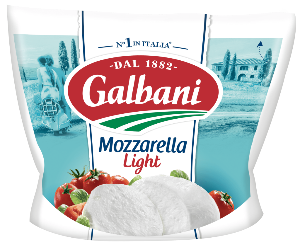 A Mozzarella Light Galbani contém 2 vezes menos matéria gorda do que a Mozzarella clássica, não deixando de conservar o seu agradável sabor a leite fresco.
