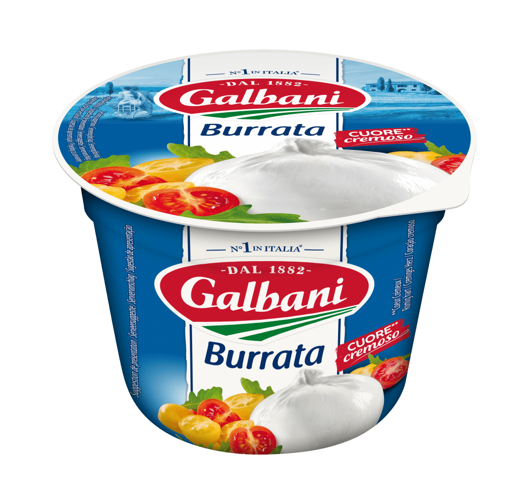 A Burrata Galbani está disponível em bola de 150 g e deve conservar-se no frio entre 4 e 6 ºC.